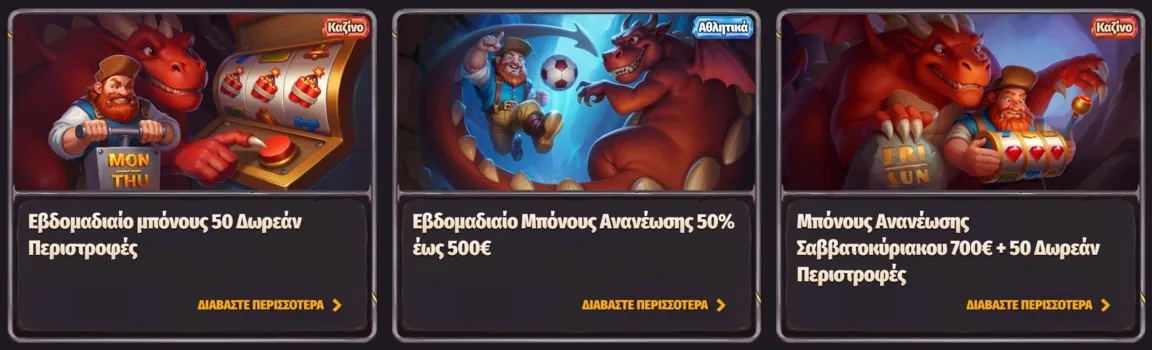 - Game of the Week: Ειδικές προσφορές σε συγκεκριμένα παιχνίδια με αυξημένα RTP ή διπλά loyalty points.